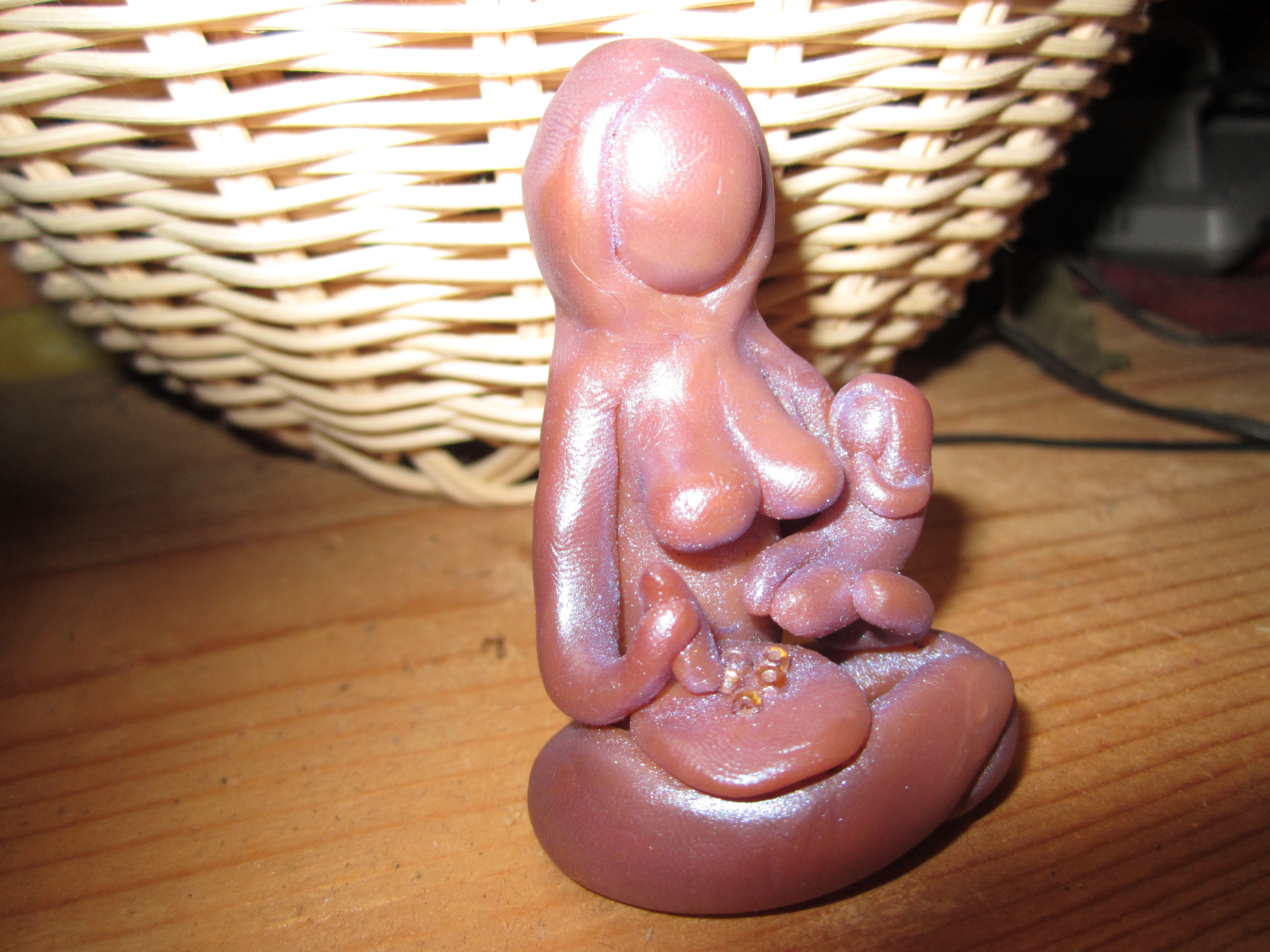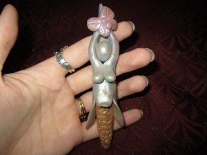 Continuing my birth art and life theme, I made two new sculptures a couple of weeks ago to express my corn grinding spirit. The first one is a corn goddess sculpture: