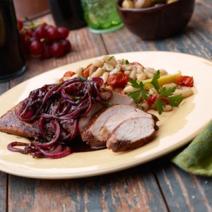 BBQ chicken topped with caramelized red onions made with The Artisanal Kitchen Aceto Balsamico di Modena