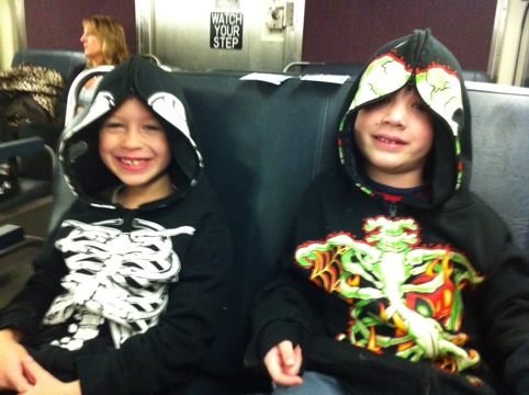 The boys on the commuter train on the way home--they both got a little bit of a fever/cold and ended up sleeping on much of the return journey. It was actually kind of "convenient"!