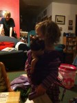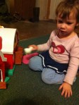 One thing I noticed on her birthday was very gendered gift choices. I see this, have feminist philosophies about it, and yet still totally participate in it! This is why I will never claim that kids just “naturally” choose certain toys and are “naturally” different from the beginning, because I think it is impossible to separate out what is actually a “natural choice” and what is very actively constructed or promoted from the environment and people around you. One thing I do admit about Alaina that is very stereotypically “girl” is the obsession with changing clothes—she picks out new underwear to wear several times a day and chooses new clothes multiple times a day as well, sometimes specifically asking for something that is “pretty” or “sparkly.” This is not something that I feel like I am actively cultivating in her (because, it is frustrating, really!). I AM actively contributing to her interest in dolls, babies, and baby care stuff, because I like those things too! And, it is fun! And, I also bought dolls and baby care stuff for my boys when they were this age too (and, they too, baby wore. I didn’t buy them an expensive doll carrier though—but, I did make them a homemade mei tai and let them wear my slings with dolls in them).