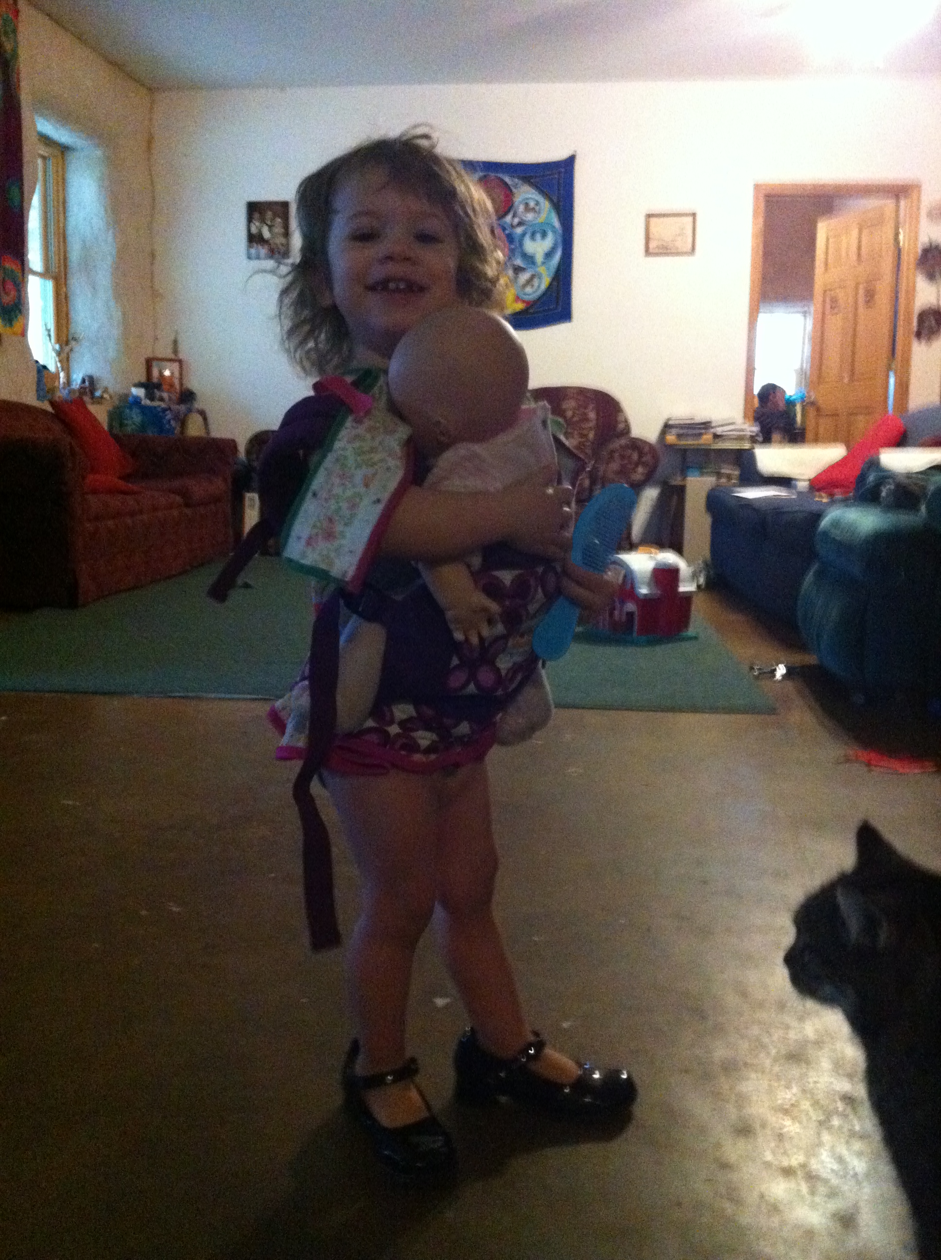 April 2013 047 Apr21 Published at 1936 × 2592 in Kidbits Next → Shiny shoes, a bathing suit, a nursing baby doll, an Ergo, and a cat. What could be better?!