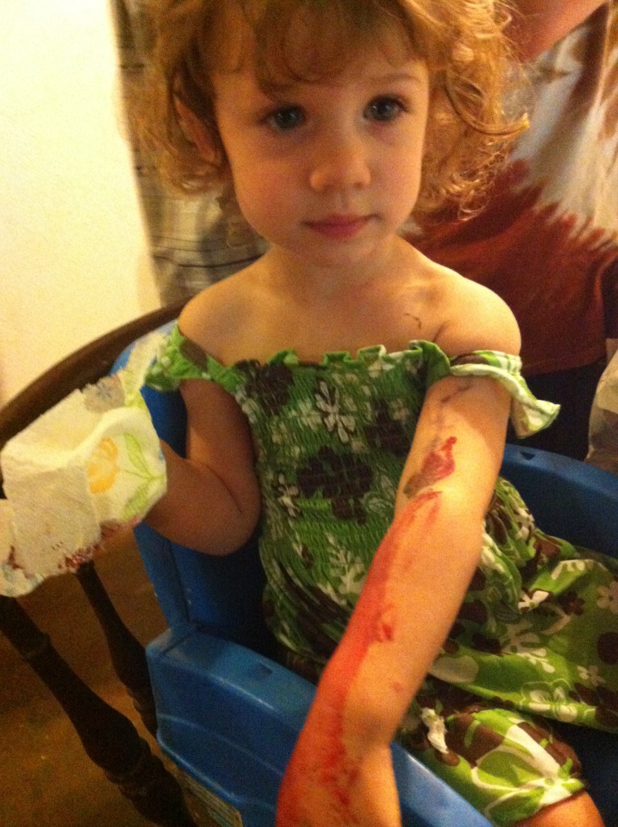 May 2013 040 May20 Published at 1936 × 2592 in Birthdays! (and lots of other stuff) ← Previous Next → For his birthday party, I ordered movie makeup supplies ala Face Off and Alaina jumped in on the action and made herself have a “ceepy arm.”