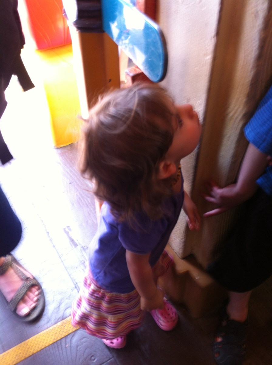 IMG_7496 Jun13 Published at 1936 × 2592 in Vacation, Phase 1: Disneyland and California Adventure ← Previous Next → Looking up to see if she meets the height requirements for Gadget’s Go Coaster in Toontown. She did!